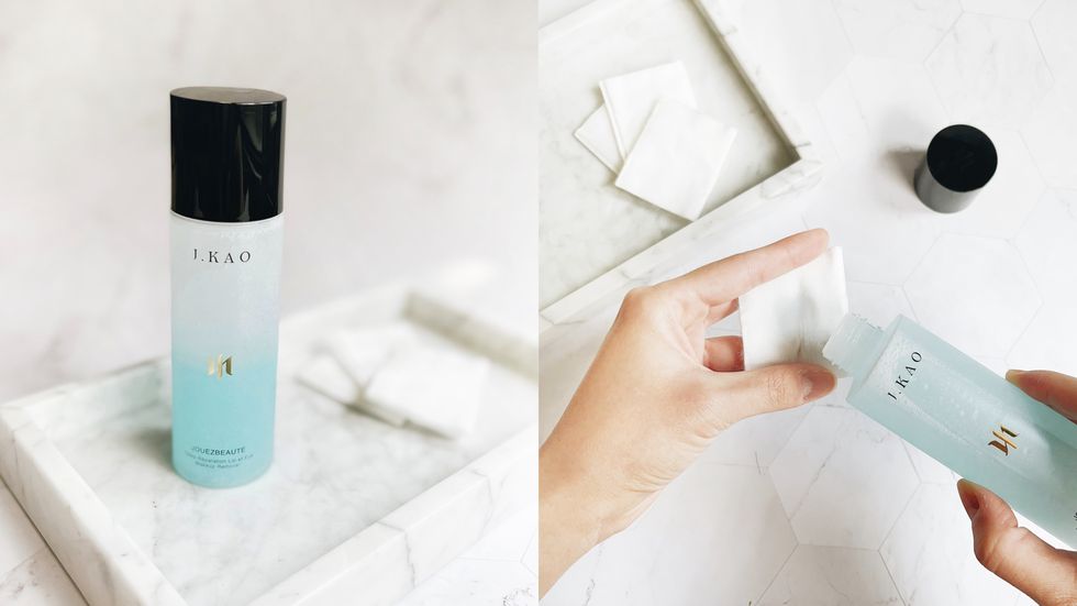 當然光說不練是不行的,E編拿出了去海邊玩整天都不會掉的超強防油抗汗睫毛膏、眼線,以及完全不沾口罩的超持色染唇膏來殘酷實測!擁有水藍漸層、高效雙層油水配方的「J.GAO 玩美深層修護眼唇卸妝液」,搖勻後搭配化妝棉使用,只要濕敷約30秒,再難纏的彩妝都清潔溜溜!輕輕的就一抹即淨,眼睛不會有熊貓眼卸不乾淨,雙唇也不會有唇膏卡紋,完全不用怕大力卸出眼周細紋、唇紋~而且卸後肌膚不僅不緊繃乾澀,還很水潤透亮,不是E編在誇張,卸完的肌膚水水潤潤真的有一種保養完的錯覺啊!很讚的是,「J.GAO 玩美深層修護眼唇卸妝液」成分溫和中性不刺激也不熏眼,清爽不油膩,不只大推有接睫毛的女孩,連敏感肌都能放心使用!想要看起來年輕減齡嗎?快一起讓「養膚分區卸妝法」成為妳的保養習慣吧!