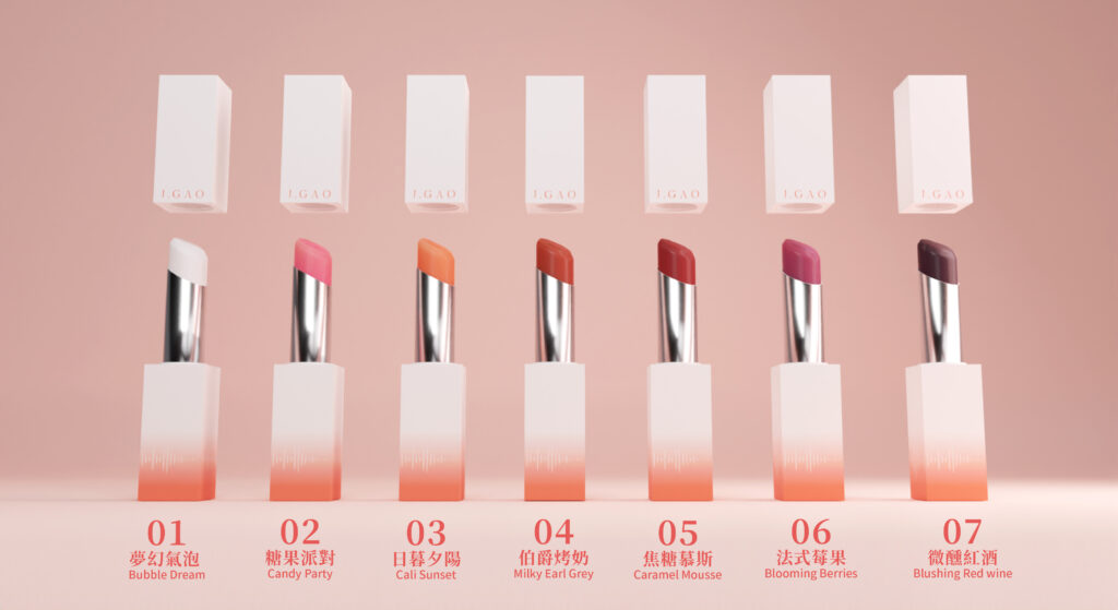「J.GAO喚唇蜜漾潤唇膏」外殼為系列聲波設計,搭配磁吸式上蓋,高級感帶著走超吸睛!此款潤唇膏一共出了7個色號,完全滿足各種個性喜好,除了有「#01夢幻氣泡、#02糖果派對、#03日暮夕陽」等熱銷透明感色選,輕鬆打造玻璃折射光澤,更有近期流行的「#04伯爵烤奶、#05焦糖慕斯」色,一抹立即套上溫柔色調,不論素顏、淡妝、約會都非常適合、超級百搭!喜愛溫柔帶紫色調的朋友,也不要錯過「#06法式莓果」,不只十分顯白,而且比起飽和度高的唇膏更好駕馭。準備參加節日聚會的朋友,則派出「#07微醺紅酒」準沒錯,上唇立現自信氣場,全場焦點就是你!7款色號其變色質地碰上嘴唇溫度,再轉化為獨特的專屬唇色,豐富選擇無論場合、年紀、性別,從中都能找到屬於自己獨一無二的命定色。