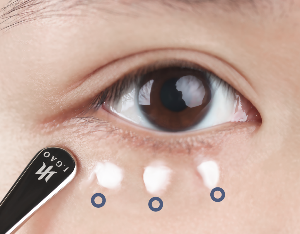於眼下輕輕劃圓滾動促進眼周循環、淡化暗沉
