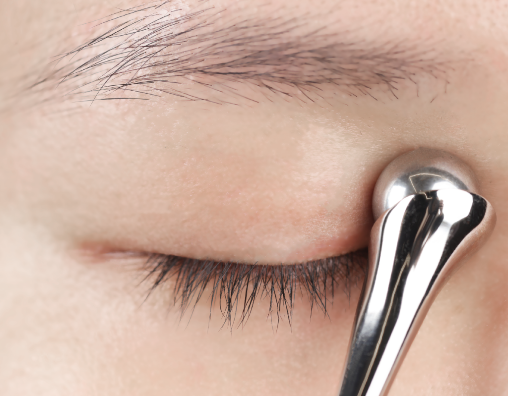 利用滾珠輕壓眼周穴道減輕眼壓、改善浮腫