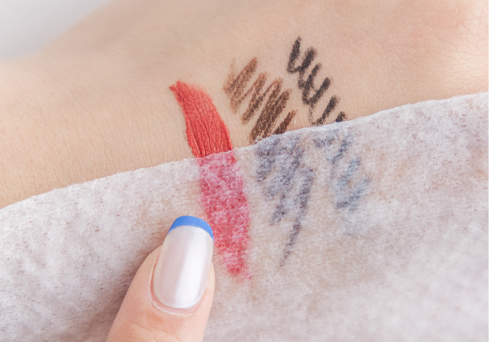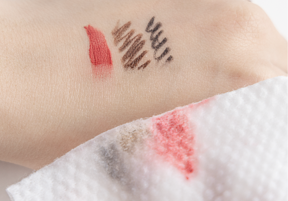 4.按壓輕擦卸除彩妝