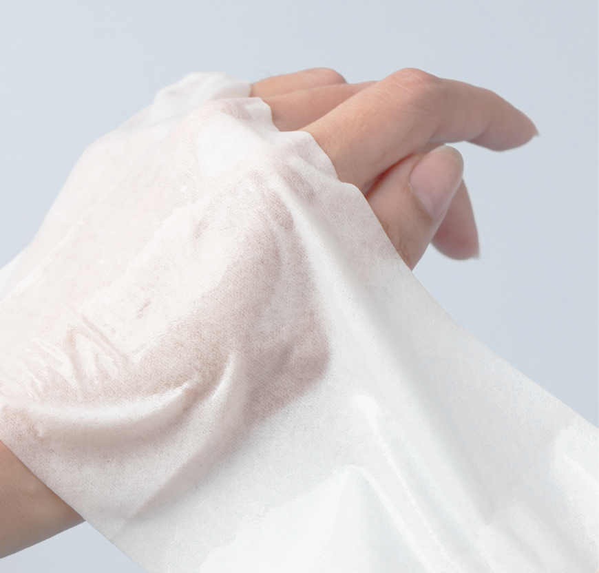 1. 頸部清潔後,取出頸膜,先將藍色無紡布層取下。